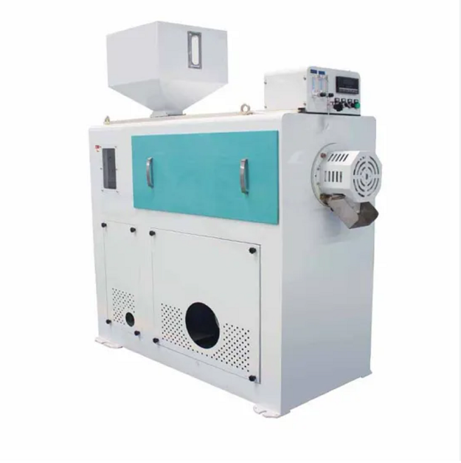 The rice polisher mainly rotates the polishing roller to make the rice grains rub and collide with the polishing roller, rice screen and other parts in the polishing chamber. At the same time, the rice in the polishing chamber is sprayed with water evenly in a certain proportion to moisten the rice surface, which is convenient for separating the bran powder on the surface of the rice grains. Under the action of the polishing pressure and the friction temperature of the polishing process, the starch on the rice surface is gelatinized to form a colloid layer, thereby achieving the purpose of improving the brightness of the rice.